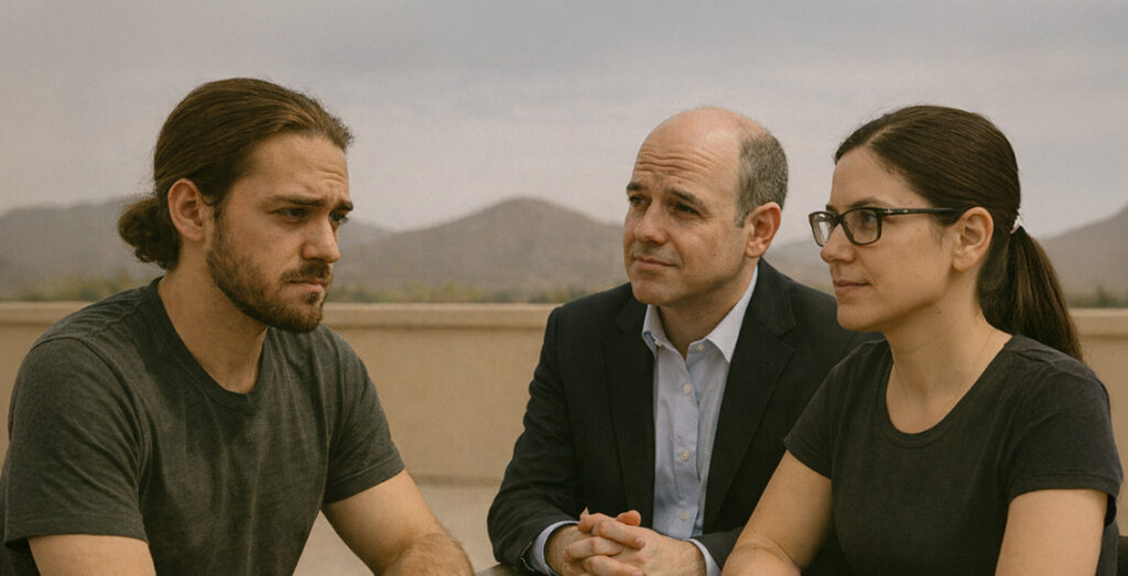 Le sage sans nom est toujours solitaire, en haut de sa montagne. Les deux journalistes, une femme, un homme, lui rendent une nouvelle visite.